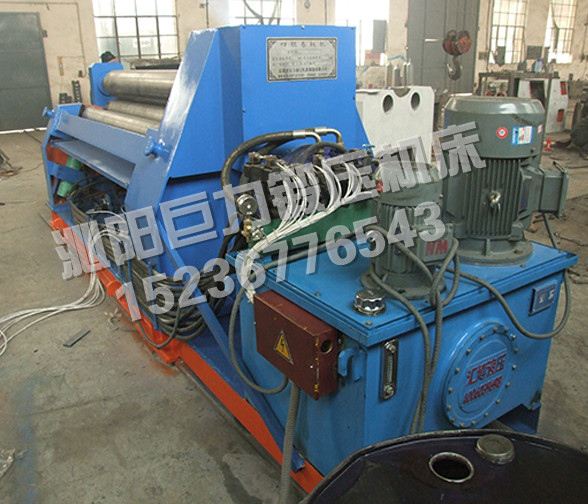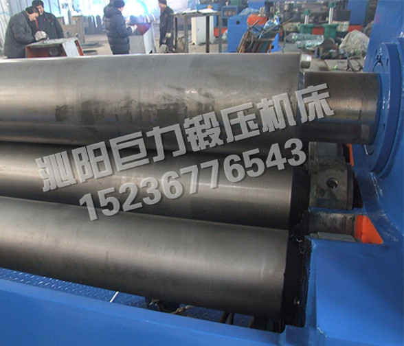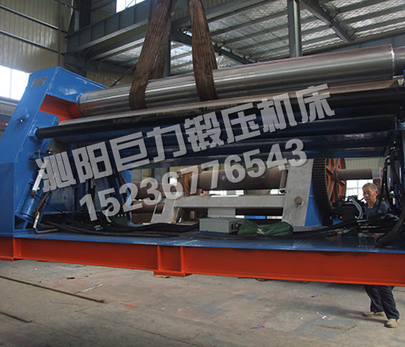 該四輥卷板機(jī)與對(duì)稱三輥卷板機(jī)比較,它可以不借助其它設(shè)備模具,直接予彎板材端部,而且剩余直邊較??;它可以不使板材調(diào)頭,而卷成工件。