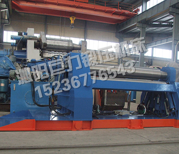 該四輥卷板機與對稱三輥卷板機比較,它可以不借助其它設(shè)備模具,直接予彎板材端部,而且剩余直邊較??;它可以不使板材調(diào)頭,而卷成工件。